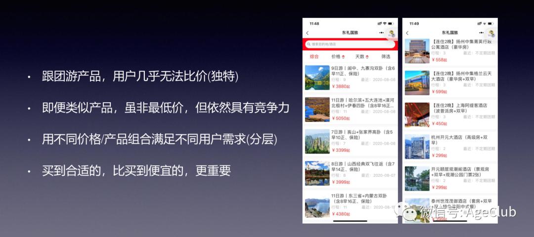 我们的这波跟团游用户,经过这几年的培养,已经知道我们的一些好玩的产品,了解了我们的服务,所以我们在推出一些有区分度的、分层次的需求时,他们也更容易买单。
