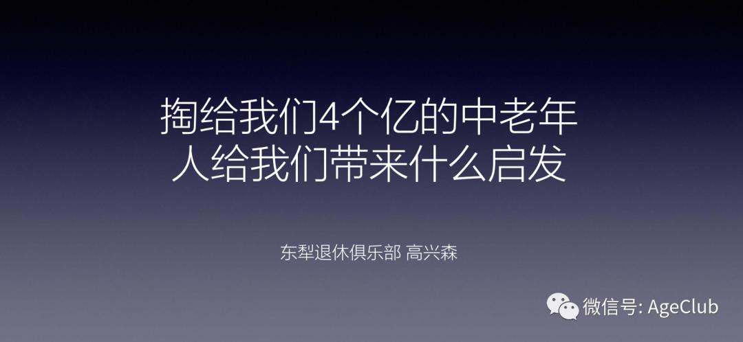 “本文是退休俱乐部运营负责人——高兴森演讲内容的整理文稿,主题为:《掏给我们4个亿的中老年人给我们带来什么启发》的干货分享。——编者”