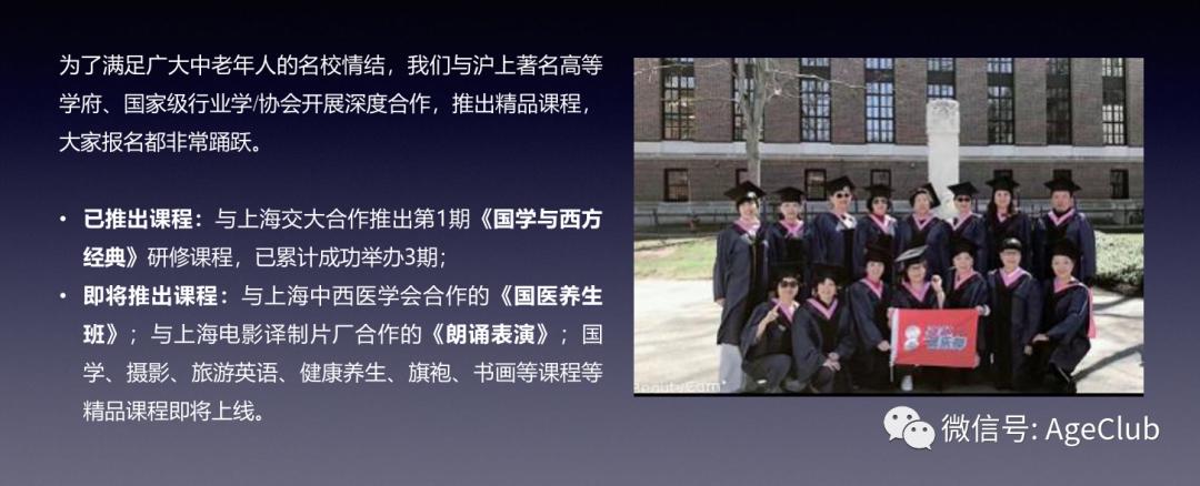 而针对普遍意义上的老年大学、线上知识付费这一块,我们还在逐步探索。