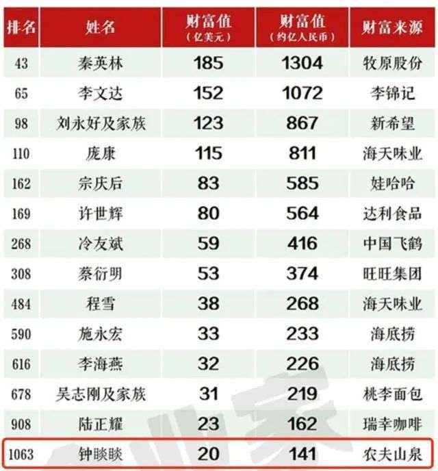 2020年4月,福布斯发布2020年度全球亿万富豪榜,创始人钟睒睒以141亿元身价位居陆正耀之后(谁能想到随后发生的事情……)