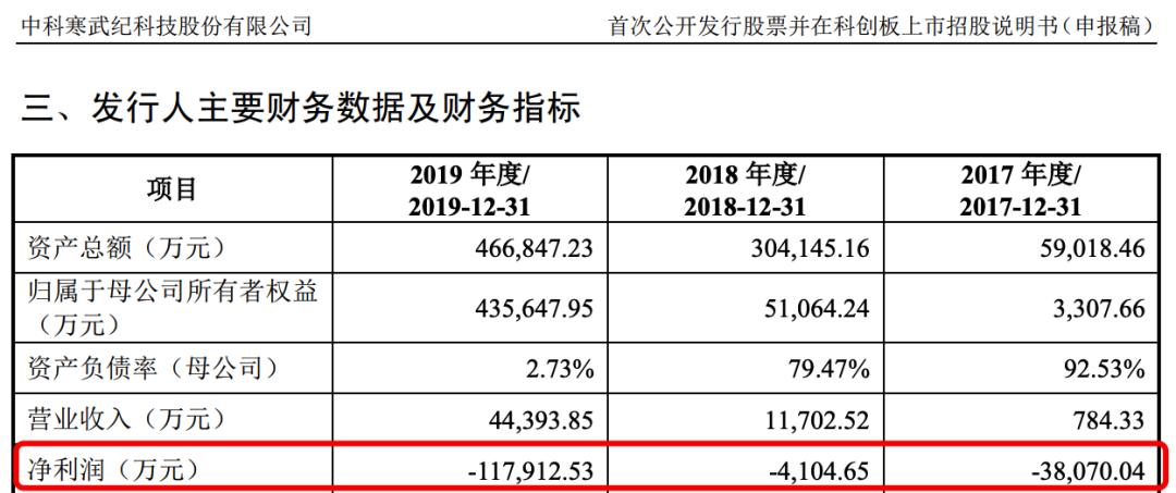 寒武纪近几年财务状况,图源:寒武纪招股书