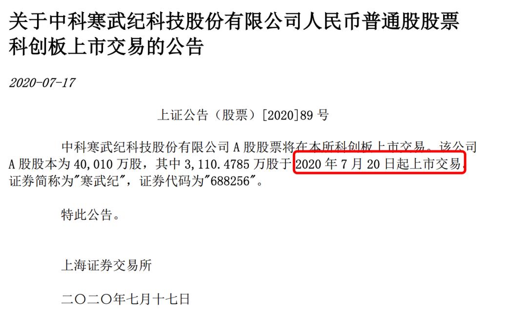 7月17日,寒武纪发布科创板上市公告,图源:寒武纪