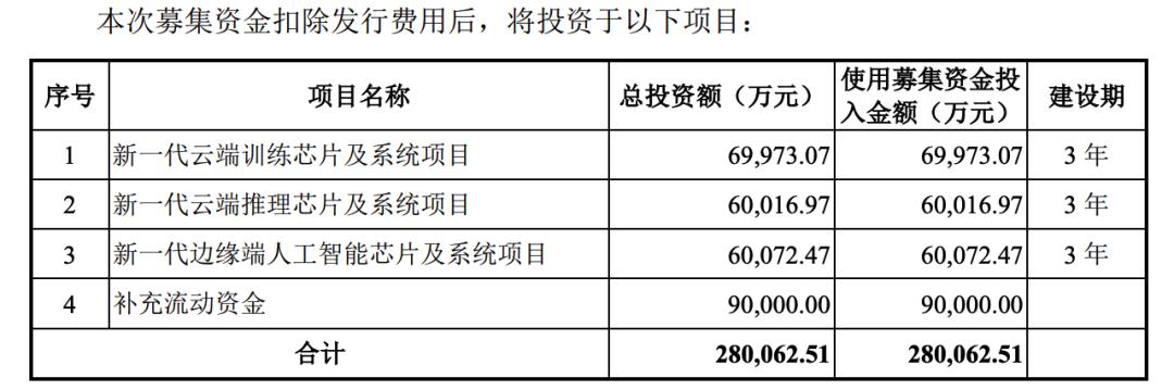 据悉,寒武纪计划分别以IPO募集资金7亿元、6亿元、6亿元和9亿元用于投资云端训练芯片及系统、新一代云端推理芯片及系统、新一代边缘端人工智能芯片及系统和补充流动资金。