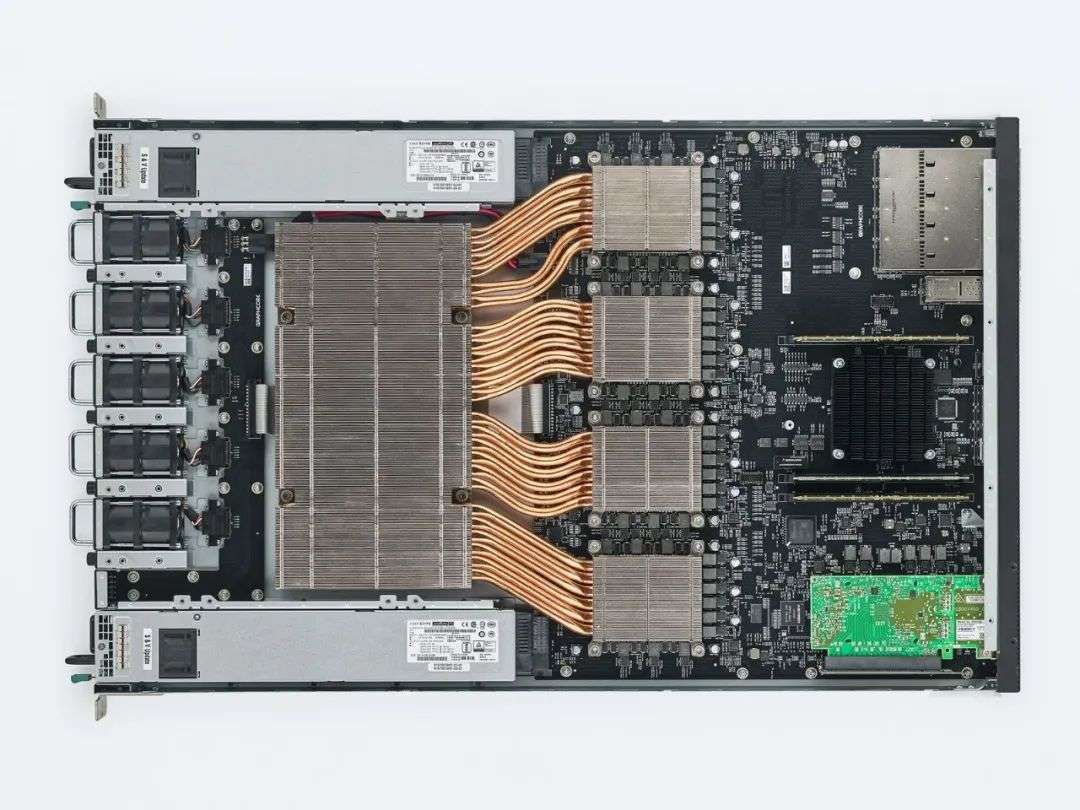 装有4个IPU GC200芯片的机器,每一枚芯片内有高达594亿个晶体管,图源:Graphcore