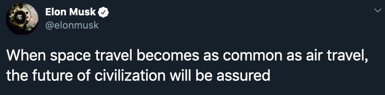 马斯克:当太空旅行变得和飞行一样普遍时,文明的未来将得到保证