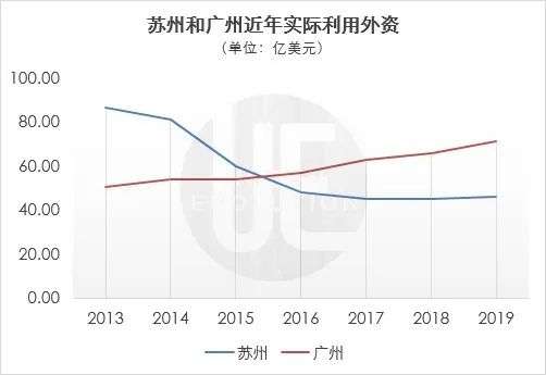 大项目是广州胜出的关键。据《中国海关》分析,与富士康紧密关联的超视堺显示面板项目落户,使其发展排位从20位以外上升至第5位。事实上,关注两市7年间外资利用情况,广州正是在苏州下滑时,于2016年实现反超。