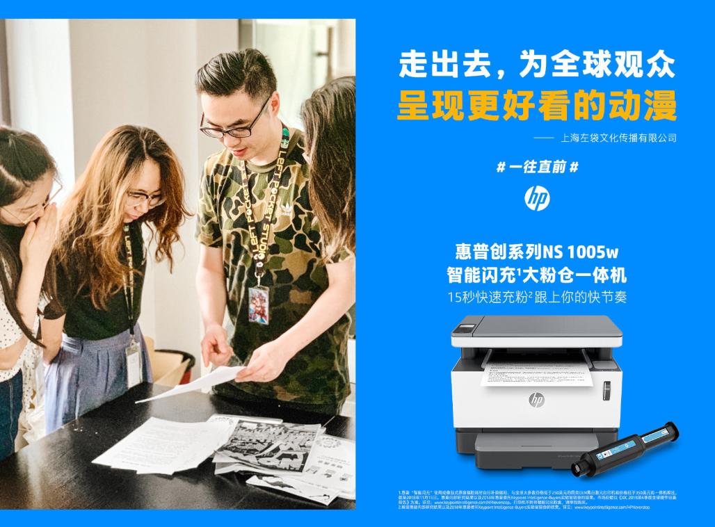 作为创意型行业,动画制作过程中导演、分镜、编剧、脚本、配乐……需要整个流程都保证专注状态,因此我们对办公设备的要求也比较高。惠普创系列NS 1005w智能闪充大粉仓一体机,具有突破性的智能闪充技术,换粉的时候不用更换硒鼓,直接将智能闪充小黑管插入充粉口,一插、一转、一推就可完成充粉,15秒快速完成,让我们不必担心工作中断,专心为给动画产业带来创观。