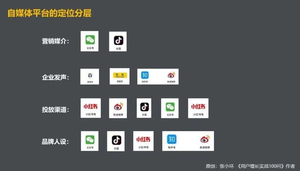 以上3个维度的考量目的是看自媒体平台是否能够成为营销当中的一个环节,当前大多数自媒体,都不能同时满足这3个特性,那么作为企业,要从定位上对所有自媒体平台做一个分层。