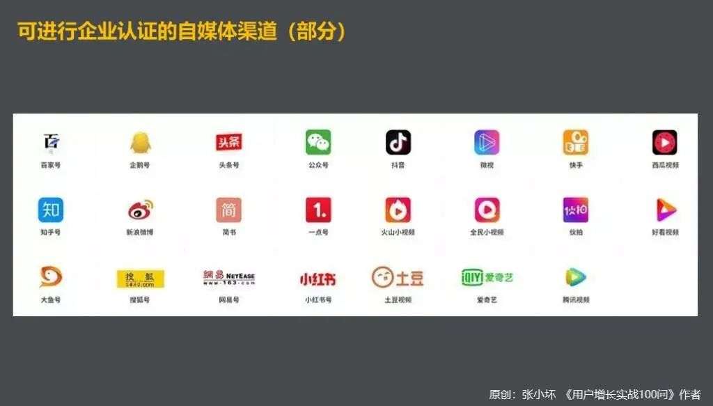企业自媒体,大概要从企业官网时代开始说起,这是PC互联网时代企业想要在网络上发声,除了媒体投放外的唯一选择;而从2011年到2020年,一家企业想要在网络上有自己的发声渠道,可以选择微博、微信、头条号、知乎、抖音、快手、B站等等平台,有的媒介机构提供企业自媒体认证服务,一次性可以认证二十几个平台的企业号。