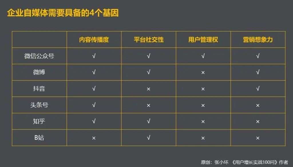 想要满足企业的这个目的,自媒体平台需要具备4个基因: