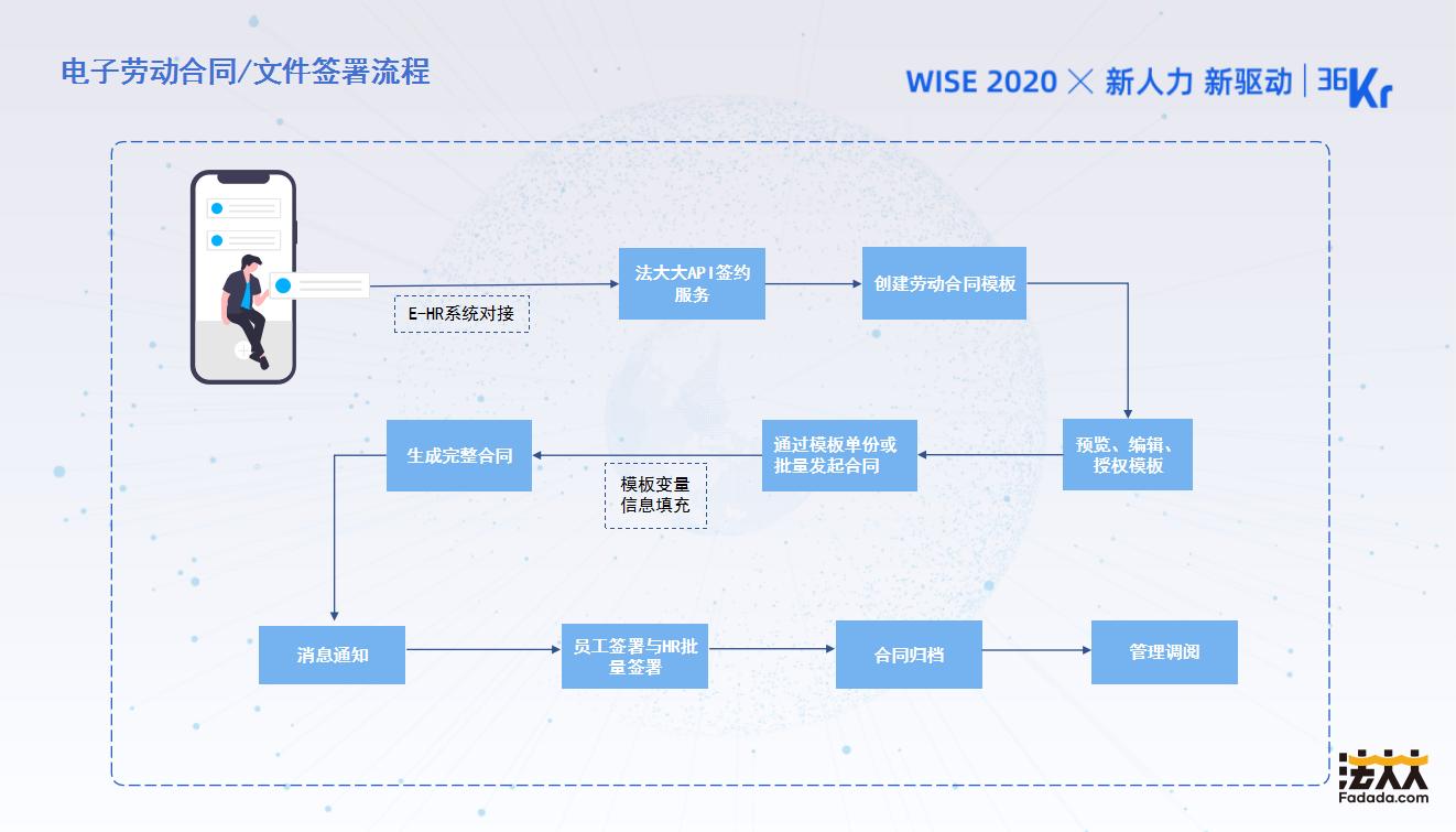 电子合同在人力资源场景下如何应用?电子劳动合同对人力资源管理起到什么样的收益?法大大联合创始人兼首席法务官梅臻认为,传统纸质合同成本高、效率低、管理难,电子合同模式是大势所趋。目前市场条件完备,电子合同行业迎来爆发。在业务处理流程中,纸质合同文件面临用户身份信息无法校验,核对装订繁琐,传达效率低下,不便于调研的业务挑战。法大大可通过平台与E-HR系统对接,批量创建和发起劳动合同,并实现批量通知和签署工作,方便文件签署状态查阅和管理合同调阅。