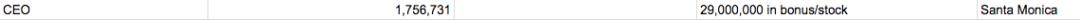 在本次曝光的匿名表格中,也有员工列出了 CEO 的年薪、奖金与股票奖励等数字。彭博社的记者表示,CEO 的薪酬是这份表格中最大的“亮点”。