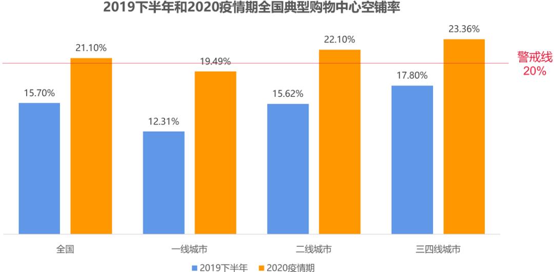 而现实正在上演着。据赢商网及中城商业研究院统计数据显示,疫情期间,全国典型购物中心平均空置率为21.10%,已经超过了业内公认的20%空置率的警戒线。