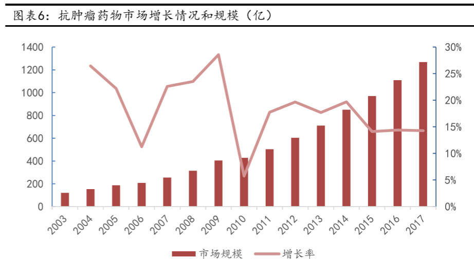 根据万联证券2020年5月发布的《抗肿瘤药物市场专题报告》,我国目前是全球肿瘤新发例数最高的国家,且发病率呈现上升趋势。随着肿瘤发病率的增高和抗肿瘤治疗的重视和普及,抗肿瘤药物市场规模不断增长。