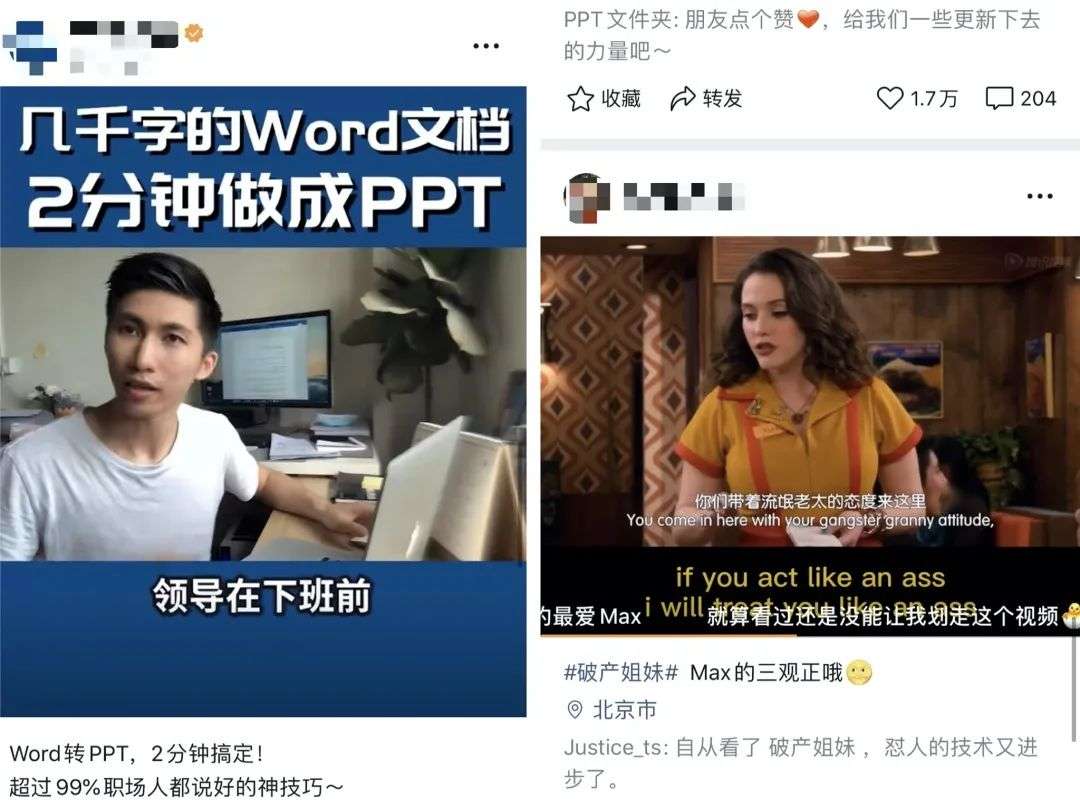 比如,这条《微信版“隐秘的角落”》视频号内容,是介绍微信里的一些冷门但实用的功能,而下方的“↓更多相似动态”则推荐了很多PPT、WORD的使用功能介绍内容,还有一些影视剧内容,如一个分享美剧的视频号发布的《破产姐妹》节选内容,推荐影视内容或许是因为我们的这条视频号内容介绍里写了《隐秘的角落》的缘故。