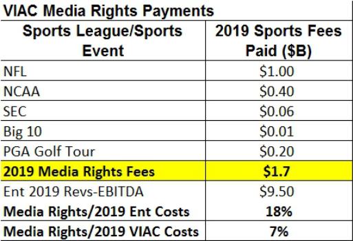 ViacomCBS去年在现场体育转播权购买上,花费了17亿美元。直播体育的媒体版权费用占到ViacomCBS 2019年娱乐内容总成本的18%,占ViacomCBS总费用的7%。ViacomCBS主要是在其CBS网上直播体育赛事,业内预测,它最有可能从NFL和NCAA重返赛场中受益。