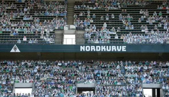 为了解决立体感的问题,德甲的部分俱乐部还采用了放置球迷人形纸片的方法。但是只有纸片没有声音配合,看起来也非常诡异,因此也有比赛中尝试在通过调试播放器来增加赛场的喧闹感和加油声。