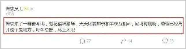 前不久,网上曝出一条消息,微软员工抵制跳槽来的前阿里华为员工,认为他们「给团队带来了加班文化,破坏规则,恶性竞争」。