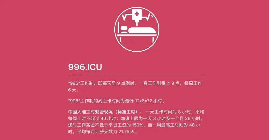 实际上,讨论加班不是最近才发生的事。2019 年因多起程序员加班猝死事件,互联网从业者自发建立了 996.ICU 网站,以此抵抗长期高强度的「996」加班文化,维护自己的利益。