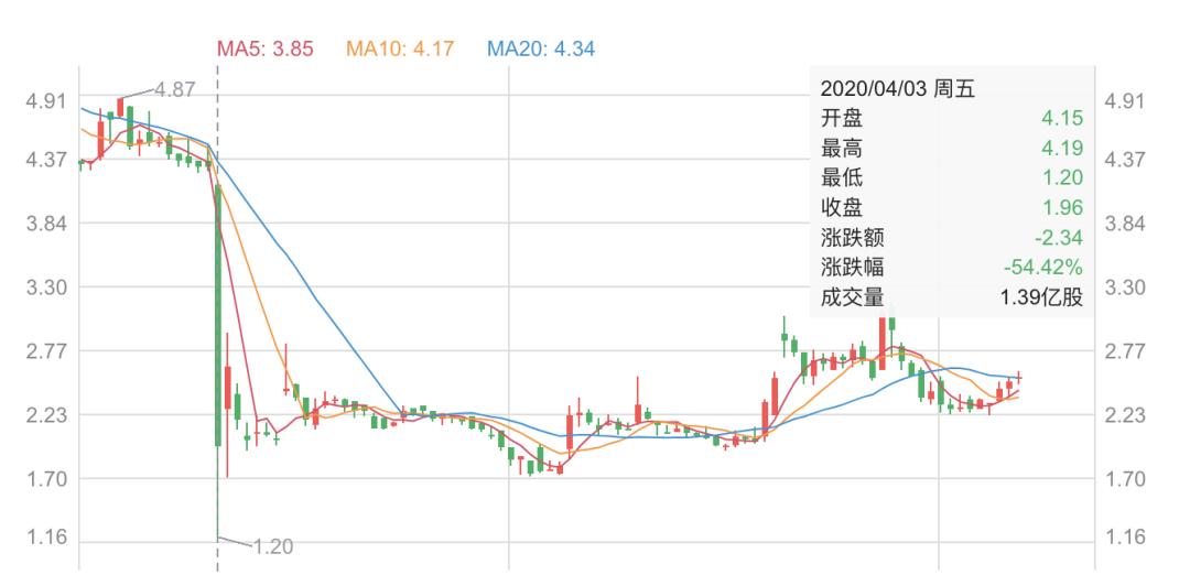 4月3日神州租车股价暴跌/图片来源:老虎证券