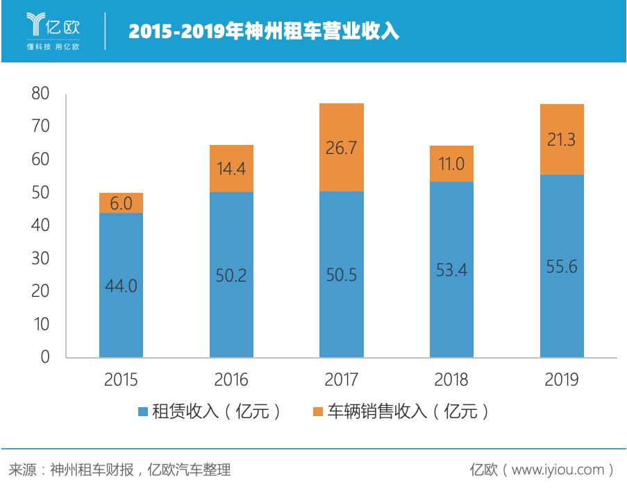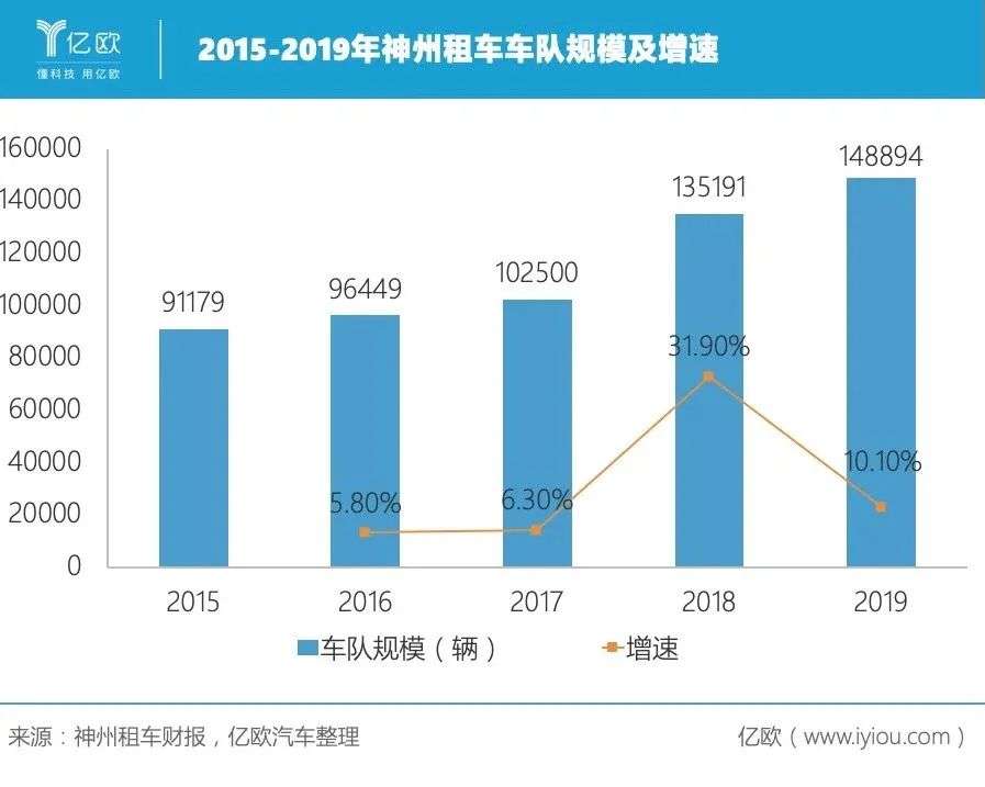 神州租车的租赁业务,主要分为两大块,对个人用户的短租业务为“汽车租赁”、对企业用户的长租业务为“车队租赁”。2019年其汽车租赁收入49.2亿元,同比增长9.6%;车队租赁营收6.4亿元,同比下降15.1%,车队租赁业务规模萎缩严重。