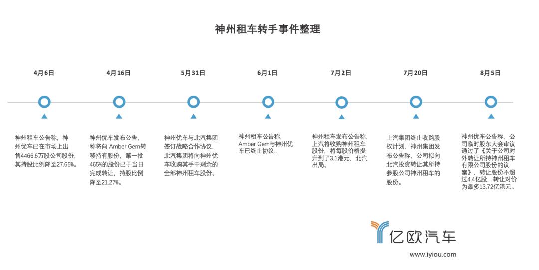 8月5日晚间,神州优车发布公告称,“为优化公司债务结构,公司拟以每股3.1港币的价格向江西省井冈山北汽投资管理有限公司或其指定第三方,转让其所持参股公司神州租车的不超过4.4亿股股份,转让对价最多13.72亿港元(约合人民币12.3亿元)”。神州优车将不再持有神州租车股份。