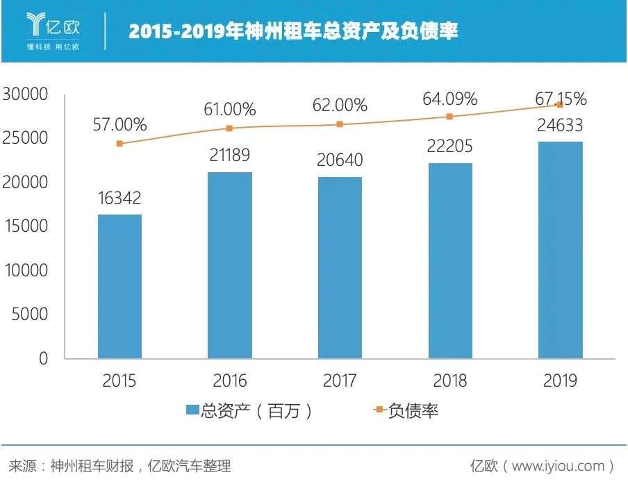 2019年神州租车的资产负债率已经达到了67.15%,虽然其账面资金有53.6亿元,但是资金压力仍较大,亿欧汽车认为,重资产经营模式是罪魁祸首。