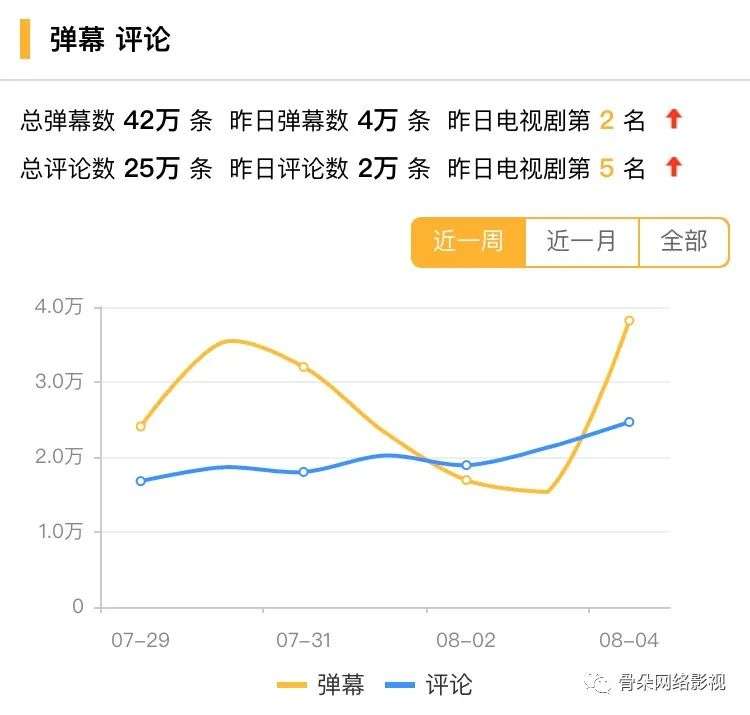 从弹幕数也可以看出观众对《三十而已》的高关注度和讨论度。截止目前,《三十而已》总弹幕42万条,总评论数25万条。