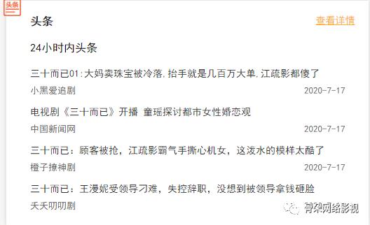 此外,《三十而已》自开播以来引导的剧外话题也一直没有停过。就第一集开播,各大媒体头条围绕探讨的是有关江疏影饰演的王漫妮首次在职场遇到同事抢单的情节,常见却不普通的情节勾连起观众自己在职场中遭遇的挫折。