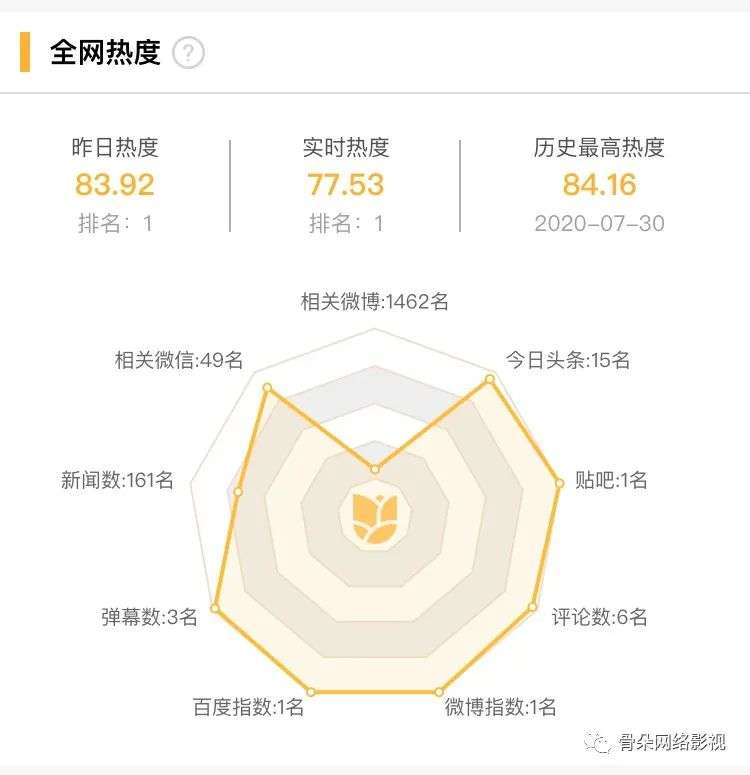 骨朵截取了8月4日《三十而已》在播期间的全网热度雷达数据来看,该剧在昨日热度和实时热度均为第1名,《三十而已》拥有着不错的传播度。