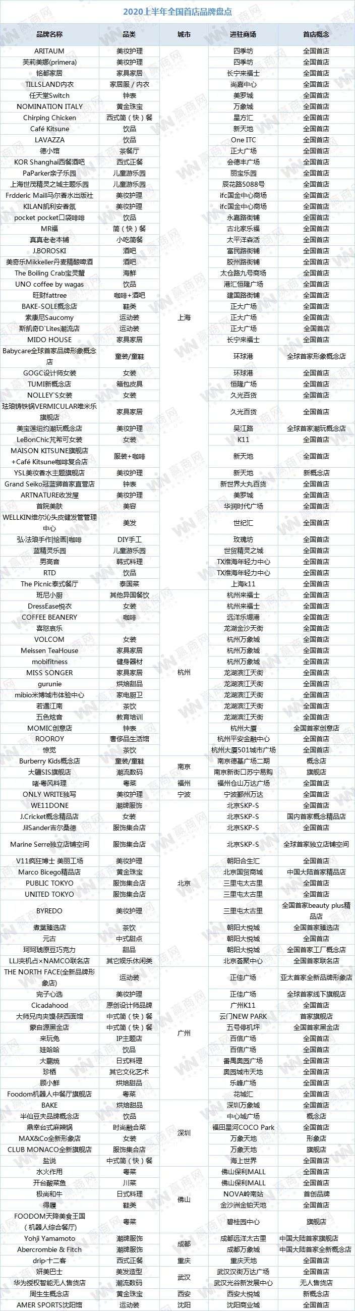 附:2020上半年全国首店品牌盘点