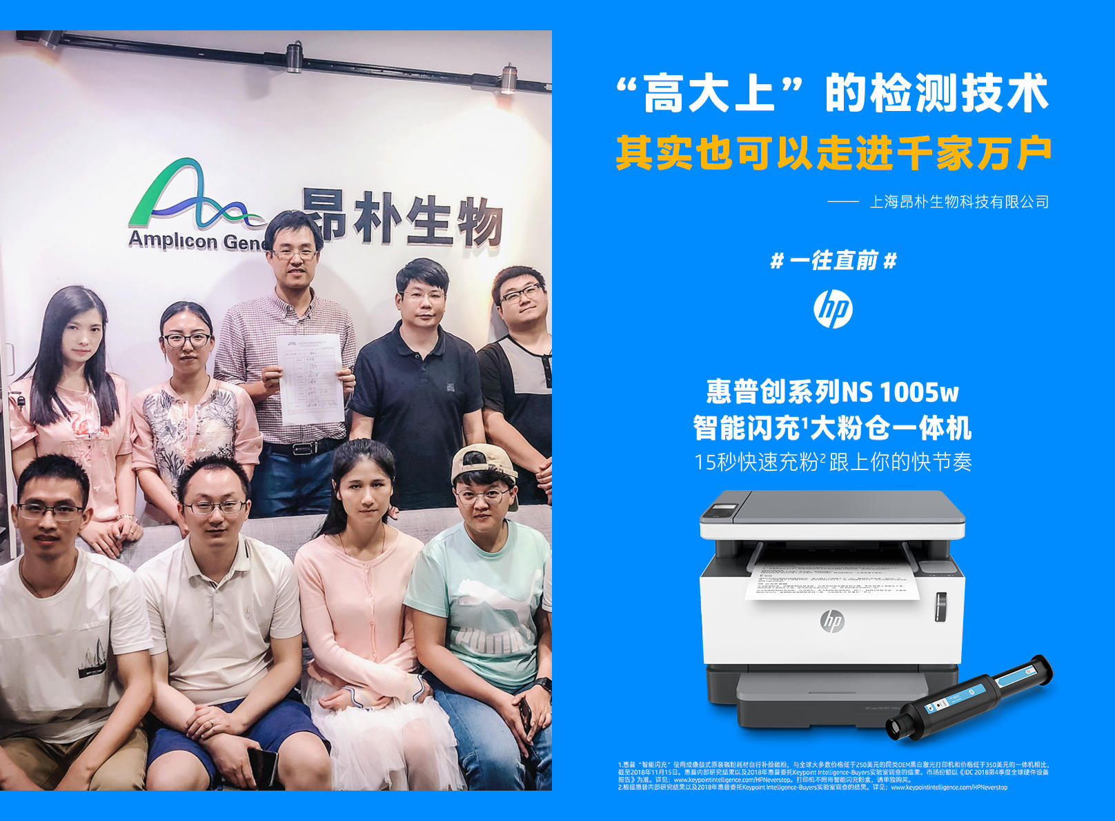 惠普创系列NS 1005w智能闪充大粉仓一体机,具有突破性的智能闪充技术,换粉的时候不用更换硒鼓,直接将智能闪充小黑管插入充粉口,一插、一转、一推即可完成充粉,15秒就能快速搞定,让办公室的打印机小白也能轻松上手。医疗行业的前沿技术变化很快,要保持行业竞争力,也需要时刻保持敏锐的学习态度,这台打印机协助昂朴生物更高效的工作,让更多新型实用的检测技术,真正走进临床,为保护人们的健康贡献出一份力量。