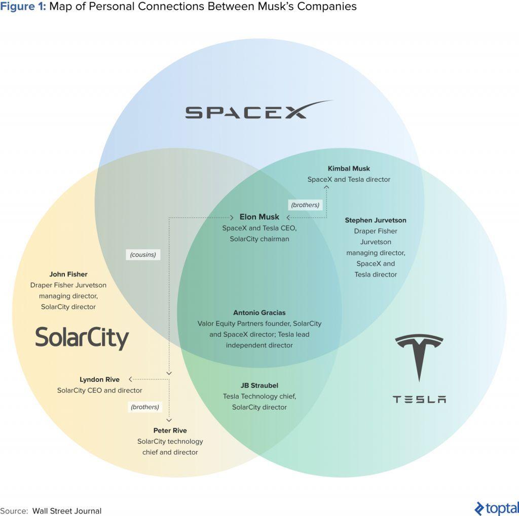 另外,SpaceX、特斯拉和SolarCity,三家公司之间的交互往往以共享员工、投资、或实际业务的形式出现。