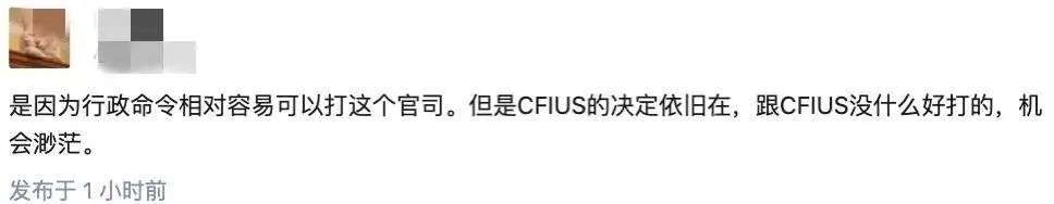 网友表示,「但是CFIUS的决定依旧在,跟CFIUS没什么好打的,机会渺茫」。