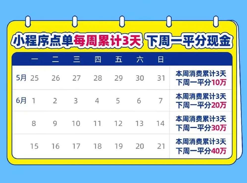 因为蜜雪冰城从小程序沉淀的顾客交易行为中,看到大部分顾客一周2次的消费频次,因此在推广百万现金活动时,将活动的打卡次数设置为3天,用“踮脚就能够到”目标,逐步提升顾客的消费频次。