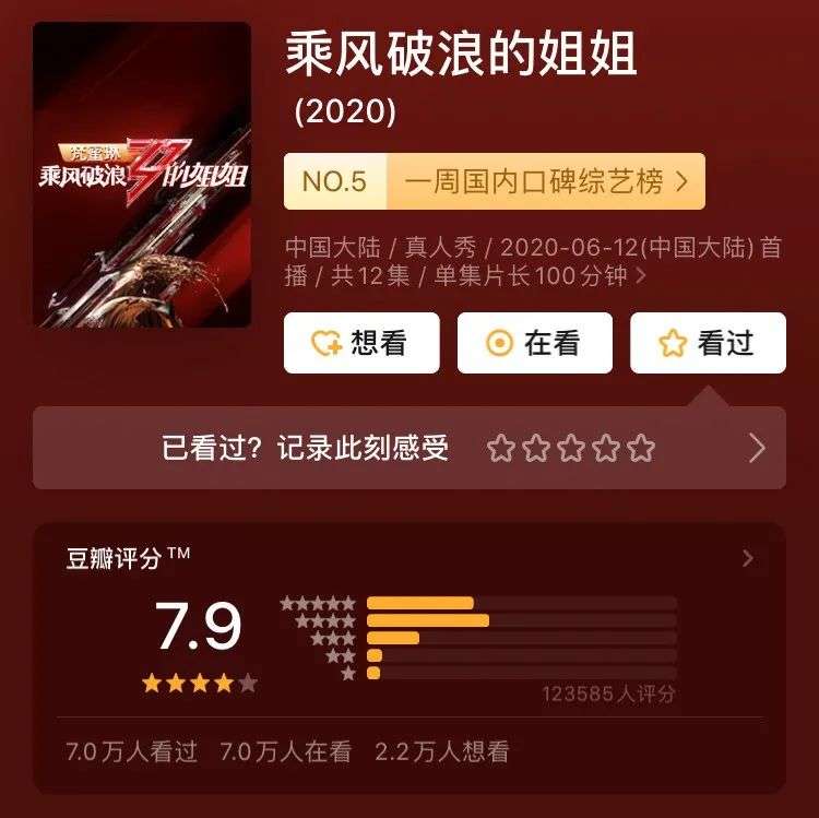 单从数据层面里来看,《乘风破浪的姐姐》依然势头强劲,还尚未出现同期综艺,可与其分庭抗礼。但在“表面风光”下,口碑从8.5分下跌到7.9、观众口风大转向,暗流正在汹涌着。