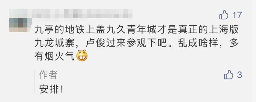 随后我就看到有粉丝在后台留言评论:“九亭的地铁上盖九久青年城,乱成啥样,那才是上海版的九龙城寨。”并得到了很多的的点赞和支持。