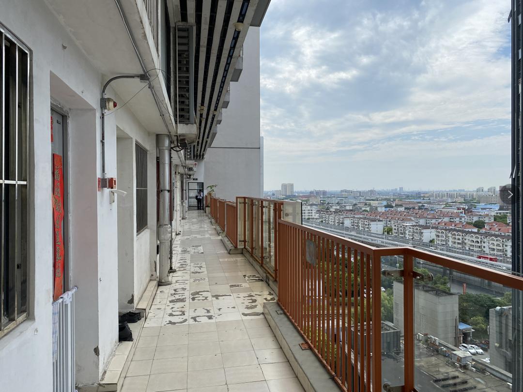 青年城是九亭的最高楼,站到顶楼可以俯瞰整个北九亭,在南卧室的窗口,可以俯瞰整个南九亭。恐高的人,真心没办法住在这里,因为一打开门,就是这样的场景。