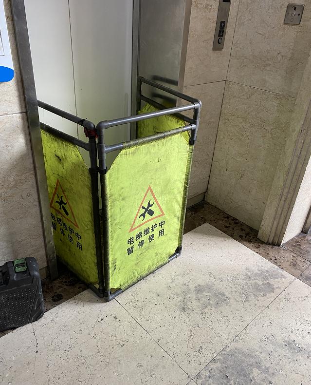 首先在电梯厅看到的是,五部电梯里已经有两部没办法使用,正在维修,让原本就不容易等的电梯,情况更加糟糕。