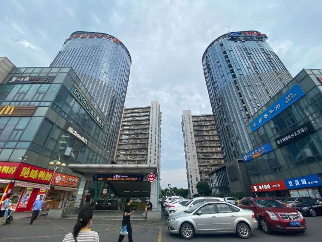 一走出九亭站地铁口,便看到是这样两栋写字楼+八栋公寓拔地而起形成的天际线。