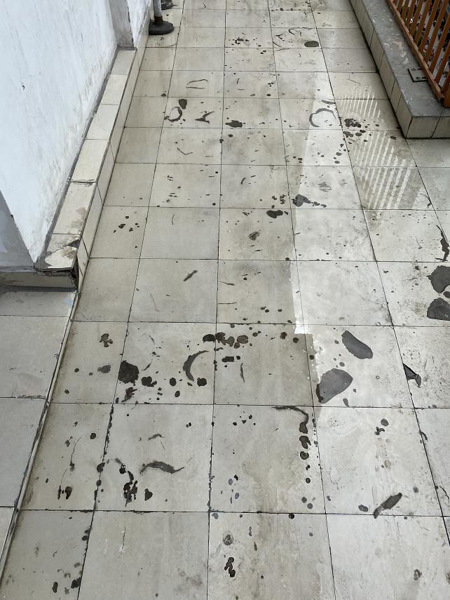 因为阳台因为属于公共部分,所以也没有人专门打扫和保养,已经呈现出坑坑洼洼的状态。