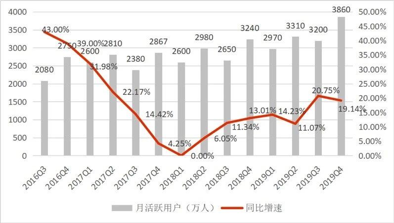 2016年Q3至2020年Q1这期间,唯品会月活用户从2080万一度涨至3860万,随即大滑坡到了2960万。即便2017年腾讯、京东投资,并给予微信、京东手机APP主界面入口持续引流新客后,唯品会的用户涨幅依旧曲折。
