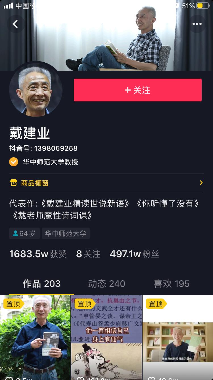 有在线教育界人士把眼光投向短视频——基于抖音、快手等短视频平台特性的学习类短视频,不再是照本宣科地“照搬线下课堂”,如华中师范大学教授戴建业,就凭借抖音上的古代文学短视频课程,吸引了近500万粉丝。