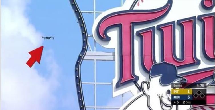 无人机闯入事件发生在明尼苏达双城队与匹兹堡海盗队的比赛中。当时比赛正在进行中,这架未经授权的无人机突然闯入明尼阿波利斯标靶球场,一直在球场上空盘旋。出于安全考虑,裁判团队立刻中止比赛,要求所有人员撤回至球员休息区。