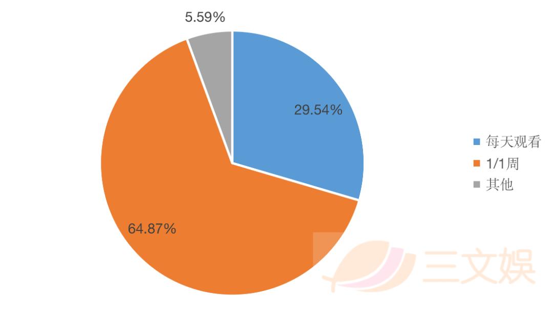 而每天观看日本漫画和动画作品的人高达29.54%,而每周观看一次的用户则达到了64.87%。