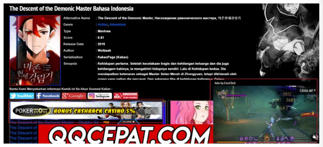 (被盗用的韩国电子漫画以及右下角的广告,出处:Mangaku.pro)