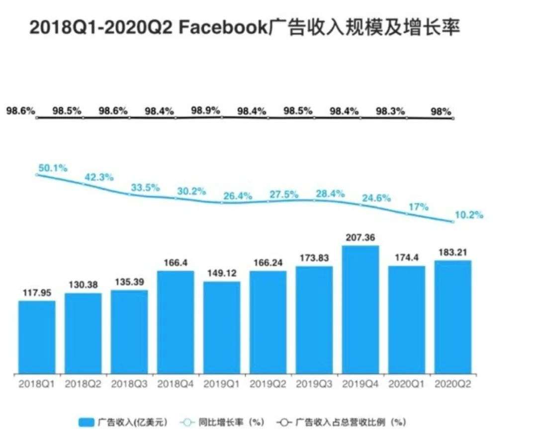 Facebook的这份成绩单,超出资本市场的预料。尤其是在联合利华、可口可乐等广告大客户终止广告投放,以及美国二季度GDP同比下滑32%的大背景下,其广告收入仍实现大幅增长,的确在很多人意料之外。