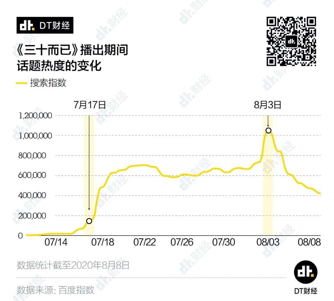 从总体趋势来看,7月17日开始,《三十而已》的热度一直处于上升状态。在7月17日和8月3日前后,这部剧的全网搜索热度出现了两次明显的上升。