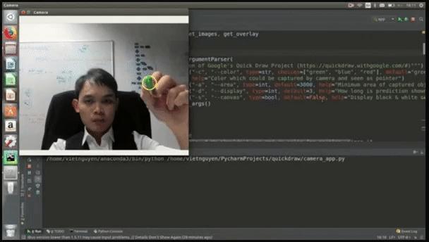这是他用Python开发的一款在线小游戏,你可以直接在摄像头前画一些简笔画,比如门、衣服、裤子等容易识别的物体,系统首先能够识别出你在画画,其次能够根据你隔空画的轮廓识别出你画的是什么。