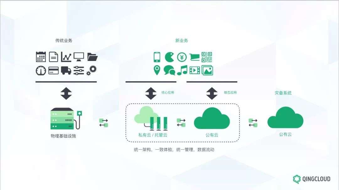 不少云服务企业只是单纯的认为混合云就是不同 IT 形态、不同技术类型、不同架构之间简单的拼接与堆砌,这样其实无法催生出创新型应用。真正可落地并带来业务价值的混合云解决方案,需要经过系统化的架构设计,并经过工程化的交付实践验证的。